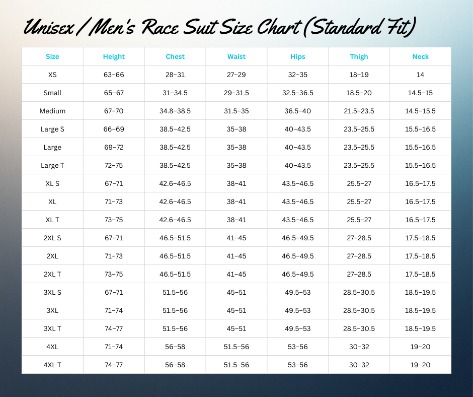 • Off-the-rack sizing (use our sizing chart)