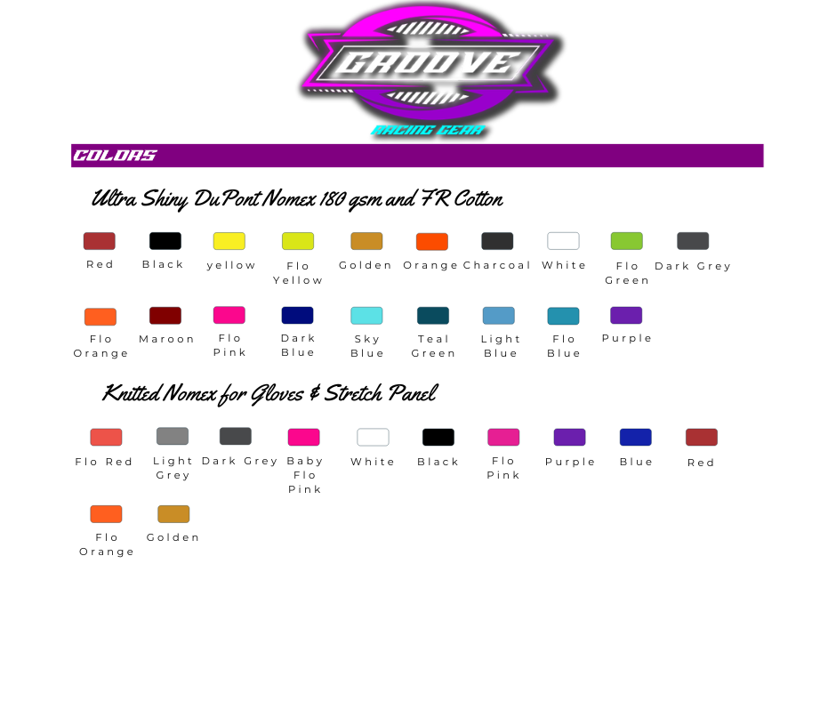 • Single logo placement: Groove Racing Gear front & center